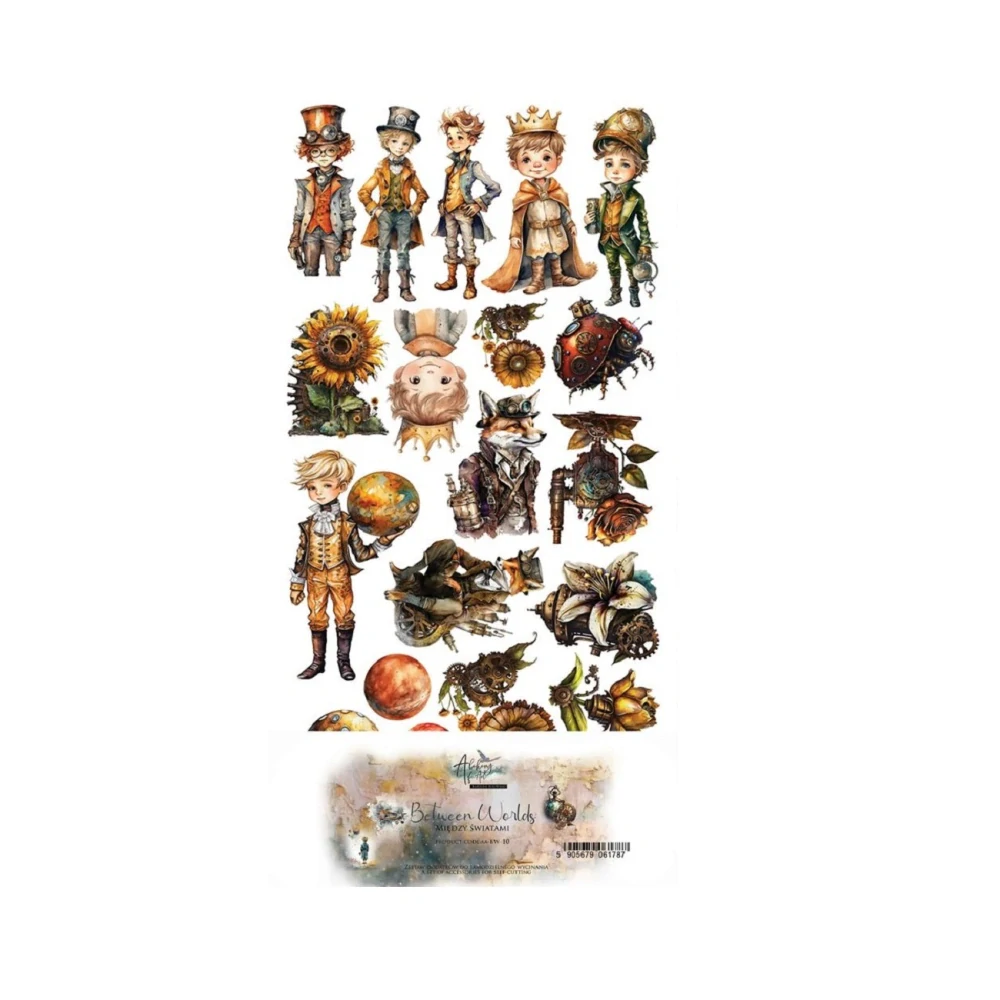 Sada doplnkových papierov na vystrihovanie obsahuje 8 rôznych obojstranne potlačených listov so zrkadlovou tlačou – rovnaké motívy sú natlačené z oboch strán papiera, pričom jedna strana obsahuje naznačené línie pre jednoduchšie vystrihovanie. Formát 6x12 inch / 15x30,5 cm.