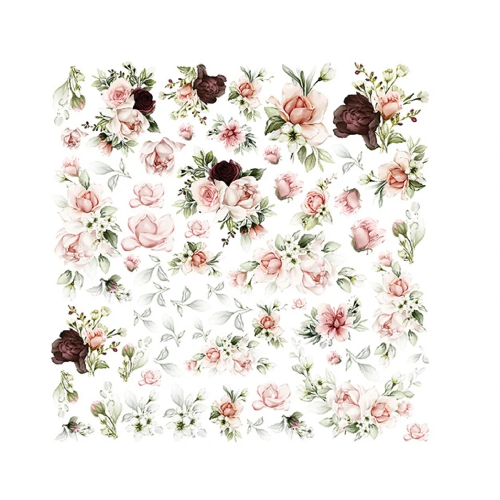 Obojstranne potlačený scrapbook papier so zrkadlovou tlačou – rovnaké motívy sú natlačené z oboch strán papiera, pričom jedna strana obsahuje naznačené línie pre jednoduchšie vystrihovanie. Formát papiera je 12×12 inch / 30,5×30,5 cm.