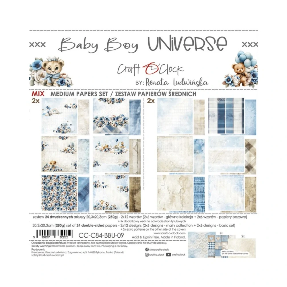 - Craft O´ Clock Scrapbook papier - Baby Boy Universe 8x8 Mix