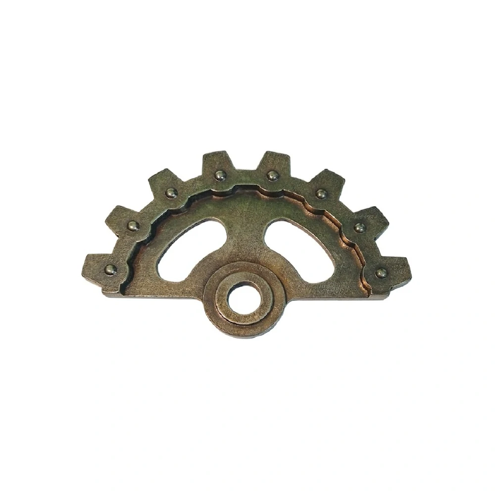 Kovový odliatok - Polovičné ozubené koleso 1 , rozmer ø80mm . Povrchová úprava: galvanické pokovovanie – mosadz + patina + lak.