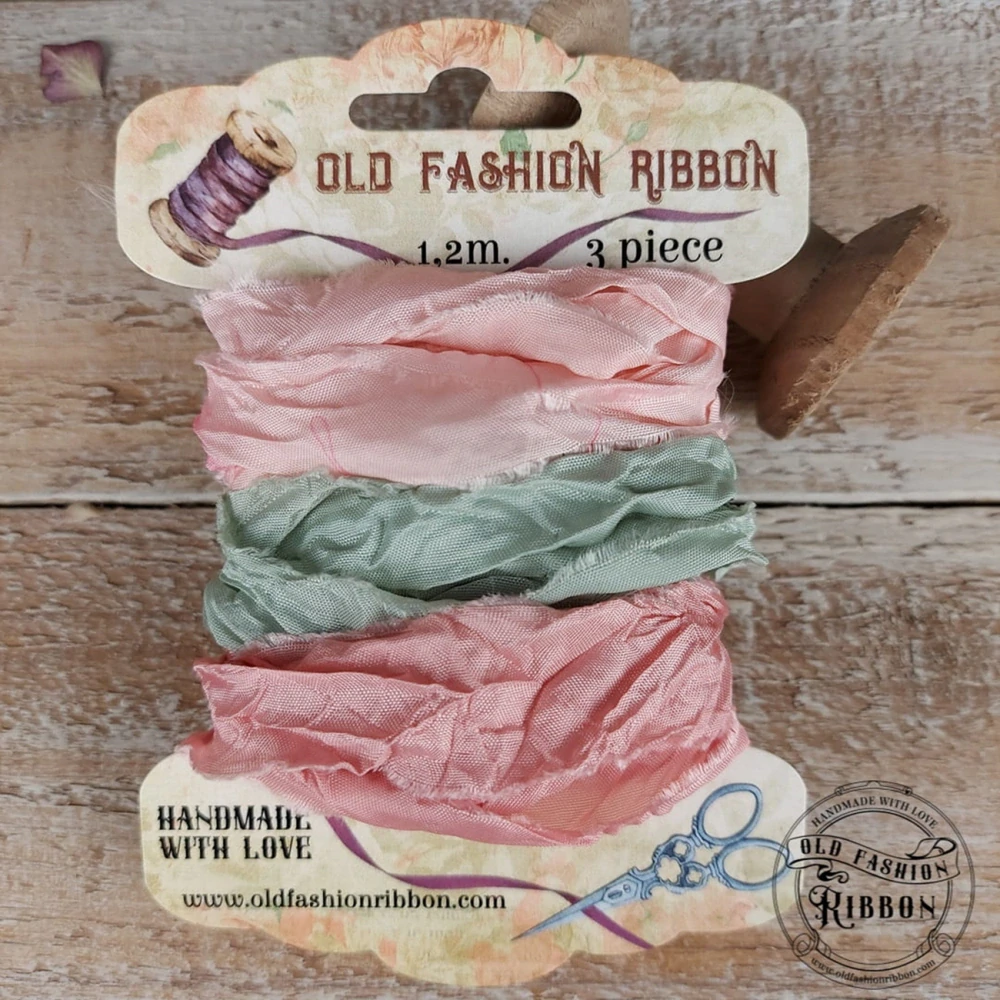 Ideálna pre journaling, scrapbooking, decoupage, floristika, výroba šperkov decoupage a mnoho ďalších projektov. Táto stuha v starom štýle dodá každému projektu punc jedinečného šarmu. Na cievke su navinuté tri stuhy v dľžke približne 1,2 až 1,4 m, každý inej farby. Šírka stuhy je 2 cm.