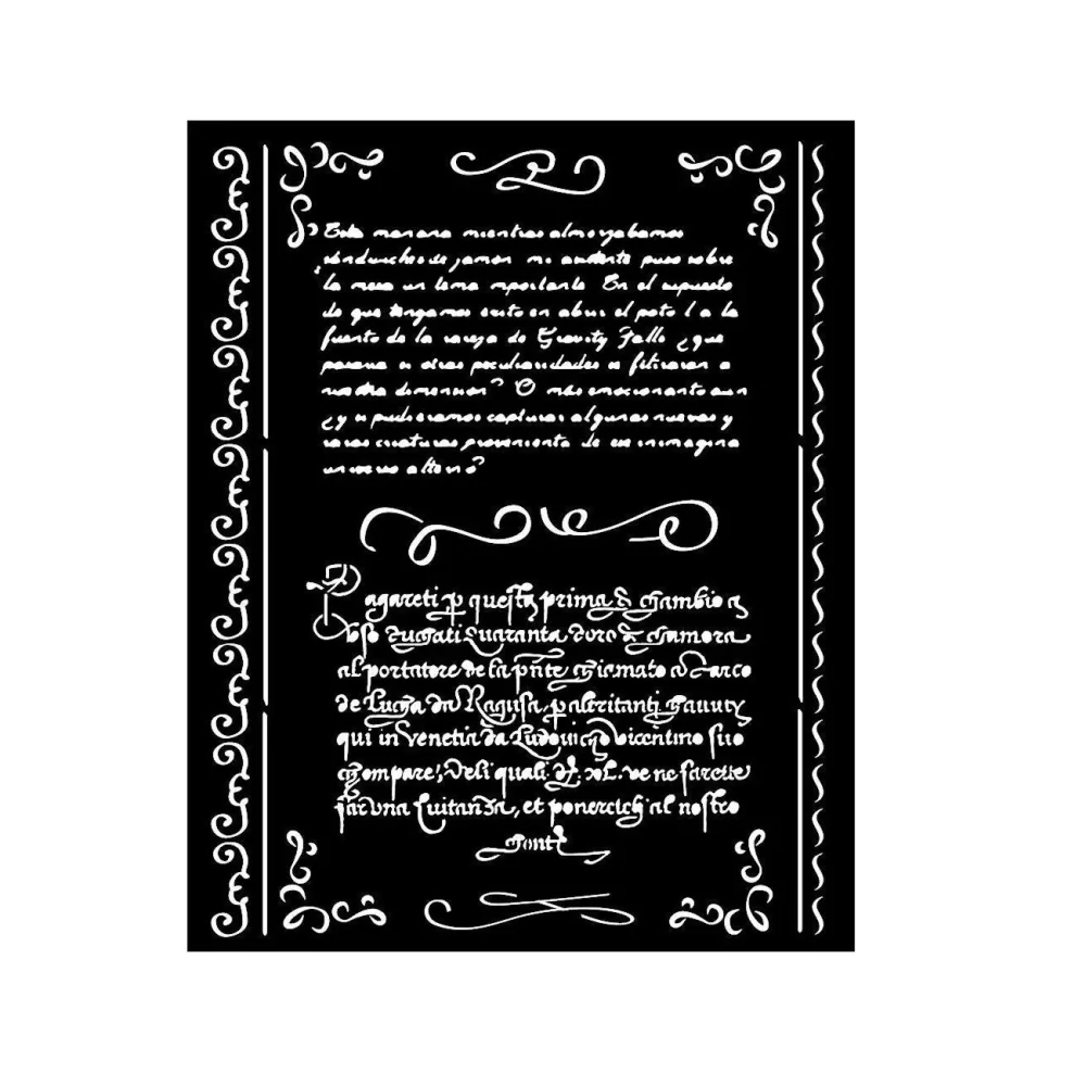 Flexibilný a pevný materiál. Ideálna pre 3D efekty, sprej a mix médiá. Hrubá šablóna vyrobená z odolného, priehľadného a pružného materiálu. Odporúča sa po každom použití umyť, kým farba nezaschne.