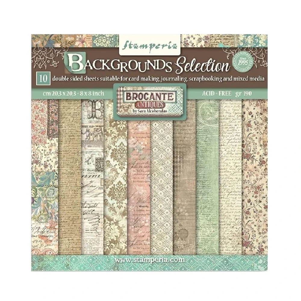 - Stamperia Scrapbook papier – Brocante Antiques Backgrounds 8x8