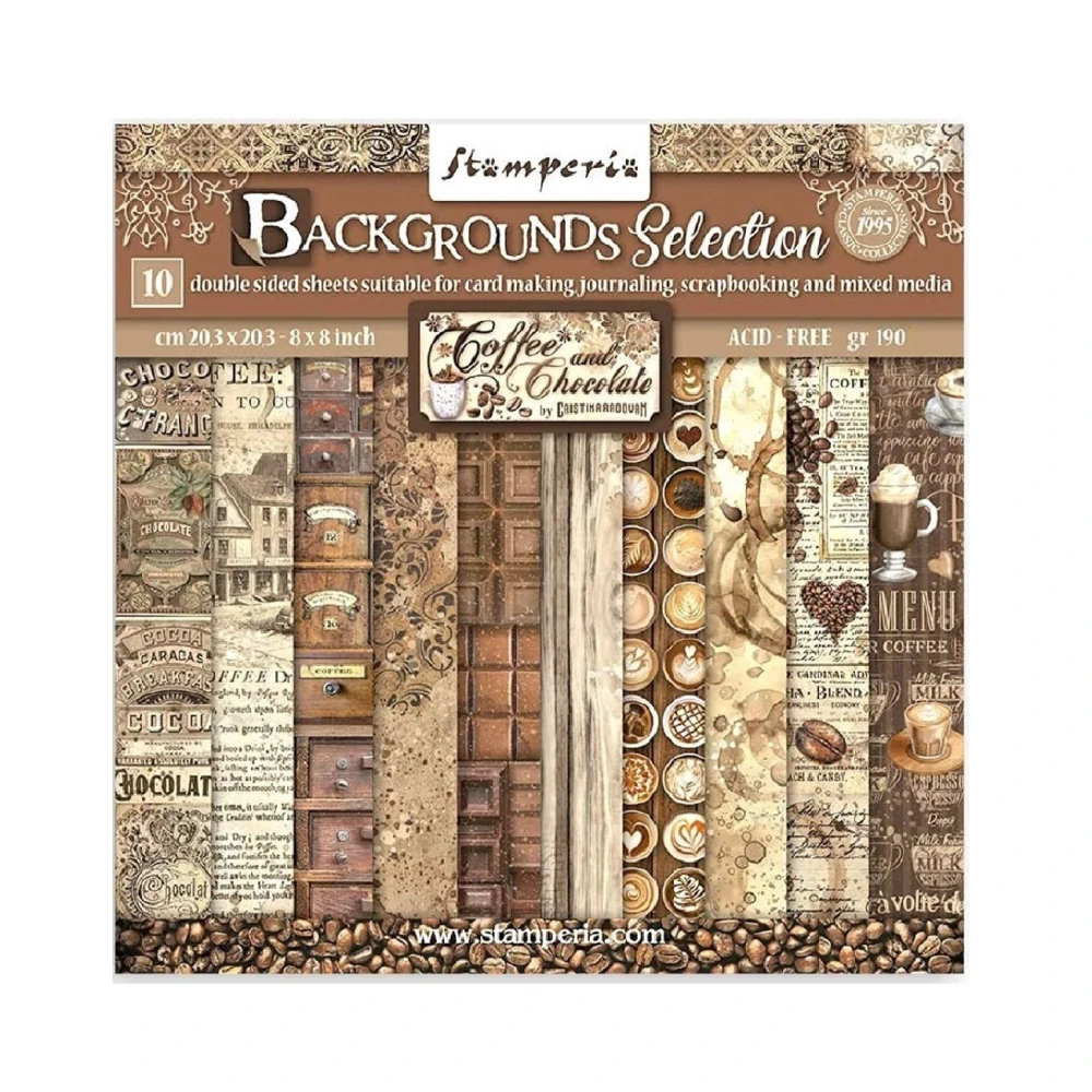 - Stamperia Scrapbook papier – Coffee and Chocolate Backgrounds 8x8