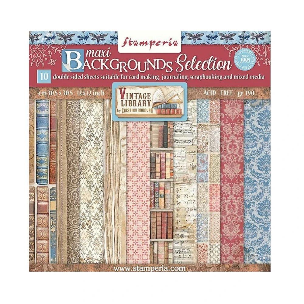 - Stamperia Scrapbook papier – Vintage Library Backgrounds 12x12