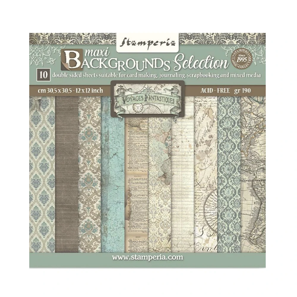 Dodajte svojim projektom originálny vzhľad s kolekciou **Voyages Fantastiques Background** od Stamperie.